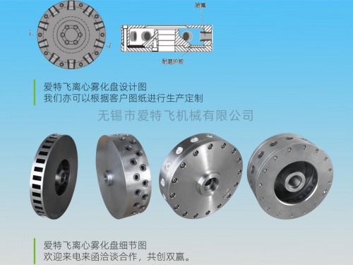 爱特飞离心雾化盘设计图我们亦可以根据客户图纸进行生产定制,◇各种雾化盘的生产、销售、配件供应及部分零配件的加工制造等。◇我们目前产品有多种雾化盘、造粒盘、倒杯雾化盘等零部件设备。爱特飞离心雾化盘细节图欢迎来电来函洽谈合作,共创双赢。